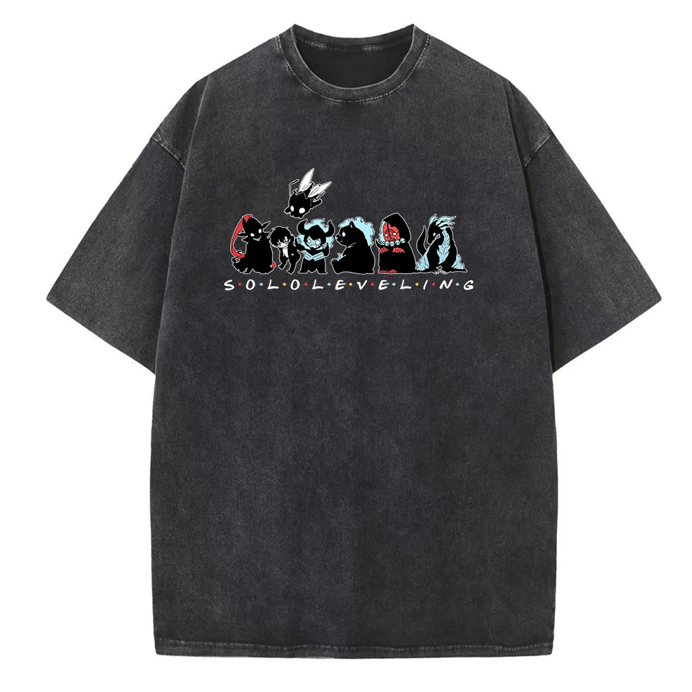 Hot Anime Cute Solo Leveling Sung Jin Woo Printed Clothing Men Women Washed Cotton T-shirts Harajuku Male Vintage T Shirt